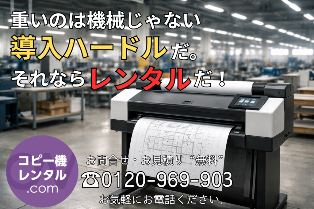A1対応のカラープロッターは、導入コストや設置スペースの面から、常設での購入にハードルを感じるケースも少なくありません。
